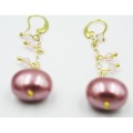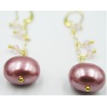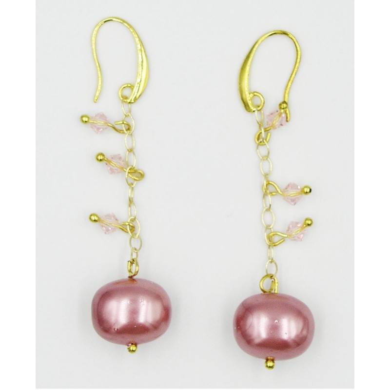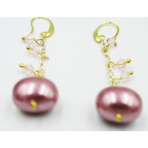 Earrings with shells in size 13x15mm. Pink Swarovski with silver plated chain and gold plated clasp.