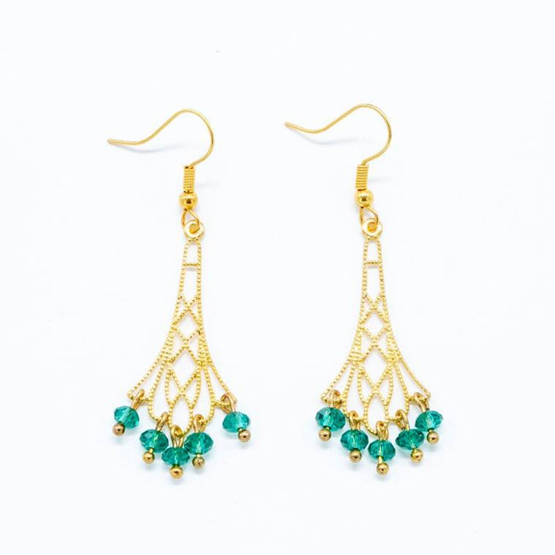 Gold plated earrings with turquoise crystals. Very cute !!!!