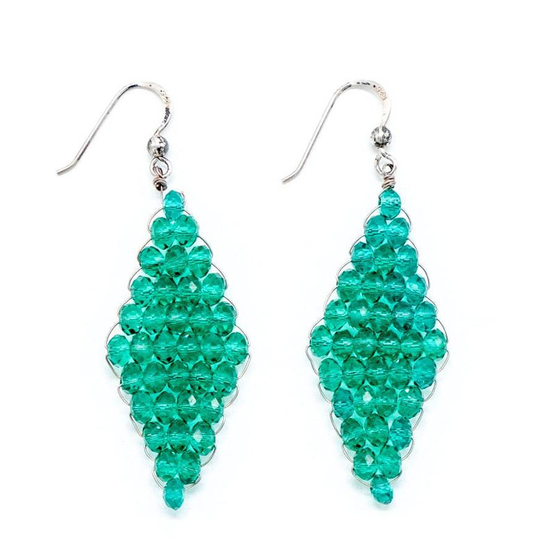Like a bunch of grapes. The crystals are green and the clasps are silver.