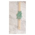 Handmade triangular candle with lace flower and rhinestones.