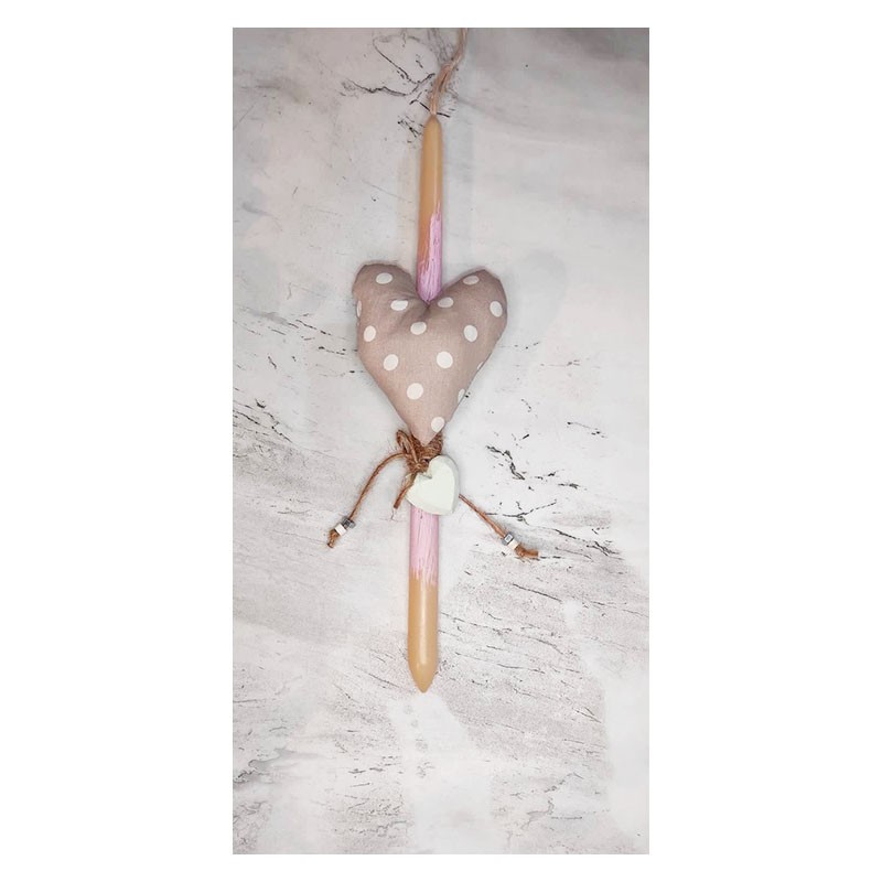 Handmade short candle with polka dot heart.