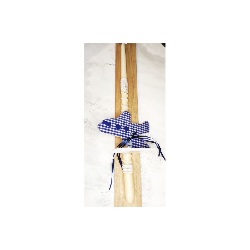 Handmade classic candle with wooden plane. The candle comes on a wooden base.