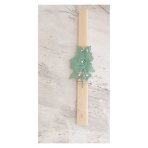 Χειροποίτη λαμπάδα τριγωνική με λουλούδι απο δαντέλα και στρας.