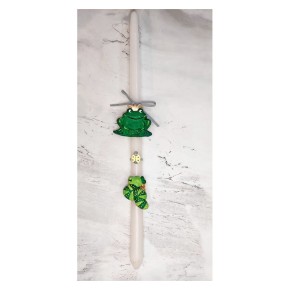 Χειροποίητη λαμπάδα κλασική με κάμπια, ένα βατραχάκι και την μικρή πασχαλίτσα.