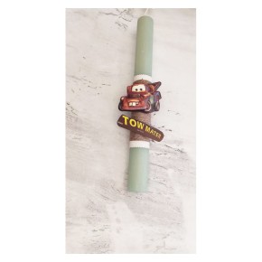 Χειροποίητη λαμπάδα στρόγγυλη χοντρή. Μαγνητάκια με τον Μπάρμπα απο την σειρά Cars.