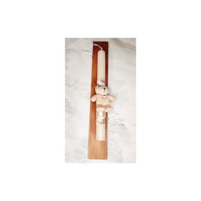 Χειροποίητη λαμπάδα μικρή στρογγυλή. Ένα μπρελόκ αρκουδάκι με αστέρι Swarovski. Η λαμπάδα έρχεται σε ξύλινη βάση.