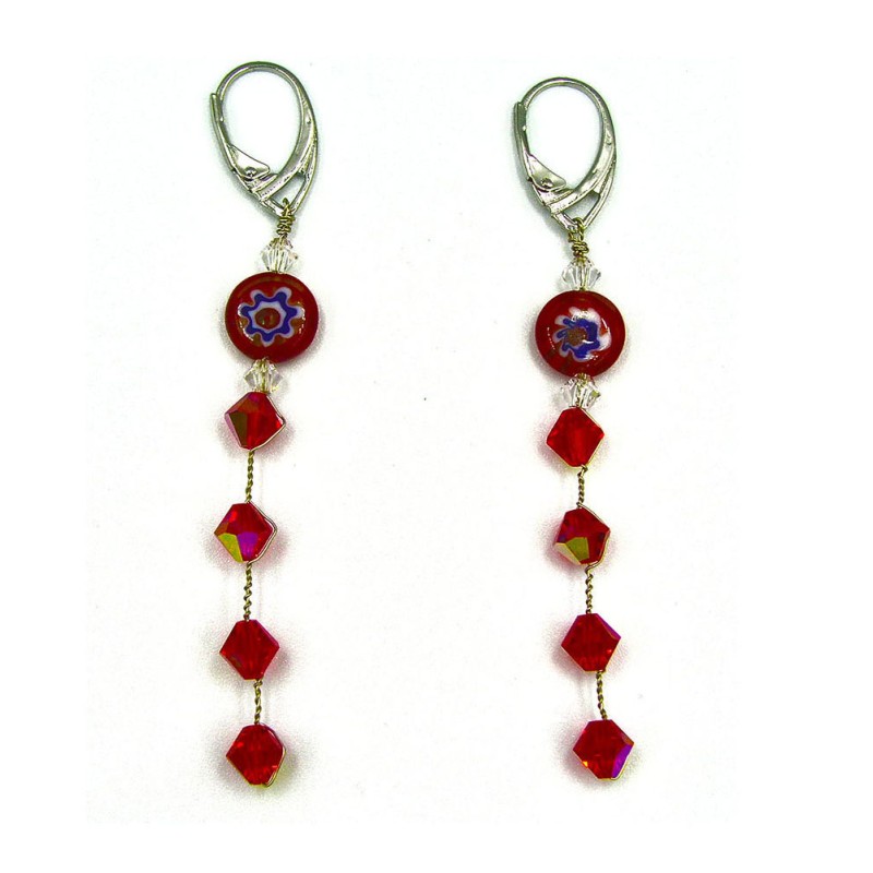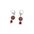 Σκουλαρίκια κόκκινα με Swarovski με millefiori και ασημένια στοιχεία.